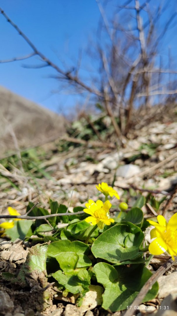 На обратном пути заметила, что на склоне пониже калужница светит как маленькие солнышки.