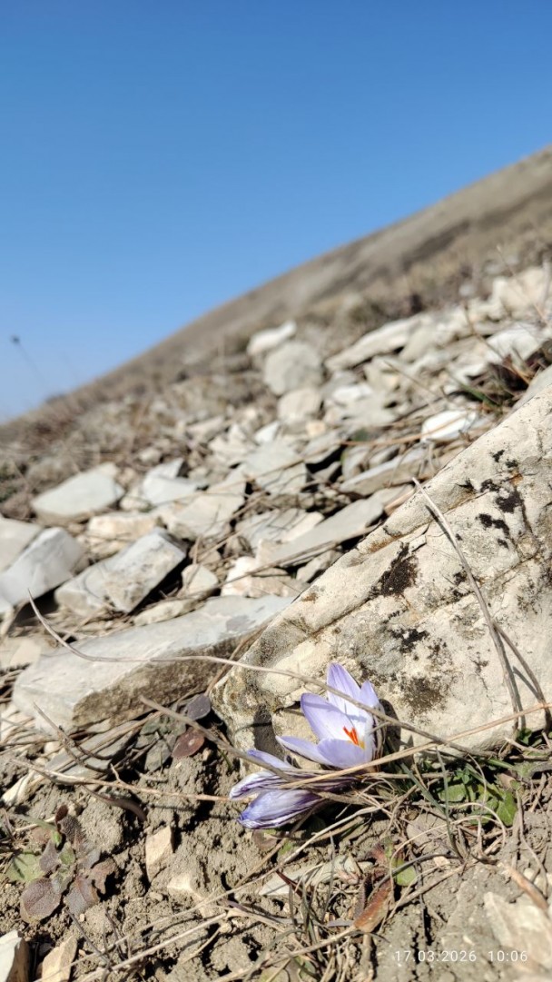 На осыпухе примостились крокусы полосатые и цветут себе!